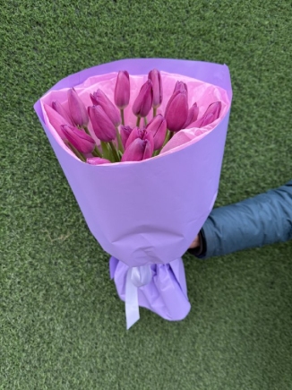 Тюльпан 17 шт, упаковка, лента атласная